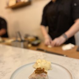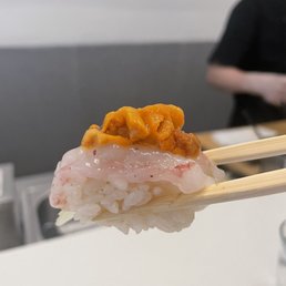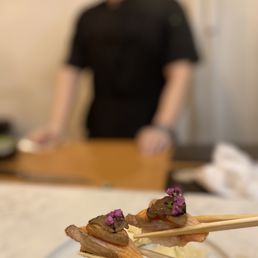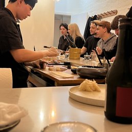 There is a $100 deposit to make a reservation. The chef's table can seat around 12 people. There are 2 chefs preparing the dishes. A wet towelette waited for us before dining. $69 omakase dining limited to 55 min of dining. As such, the dining experience felt a bit rushed but overall we enjoyed the intimate experience. The chef asked if we had any allergies and I had specified that I didn't eat shrimp. One of the dishes was replaced with uni! Every single one was delicious, fresh, and packed w flavor! We also opted for 1 additional $18 wagyu piece and WOW it was phenomenal!! The sake was great and reasonably priced. Our waters were refilled often. Would highly recommend this spot!