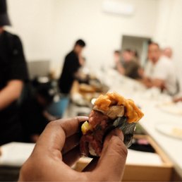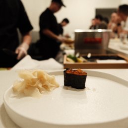 Good deal for omakase. We went for a date night and it was easy enough to get a reservation a few days before on a Friday night. The meal moved quite fast, spending only about 45 mins for the meal. They have designated sushi chefs for every section of the bar tables. While we weren't stuffed to the briny after the omakase course, each piece of fish we had was incredibly soft and delicious. Such good quality of fish especially for the price point. They change the menu as it's seasonal, but if you have a chance, the hotate (scallop) and akami zuke were delicious.