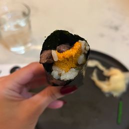 Absolutely delicious and beautiful presentation. Service was quick and easy, you text their number with your order, then they bring it out to you when it's ready. Great to eat at the nearby park! My favorites were the ikura and uni. I've never been a huge ikura fan because it usually has a basic salty/fishy flavor, but this one was so complex and incredible. The uni was so buttery and fresh! I've never had uni that good!